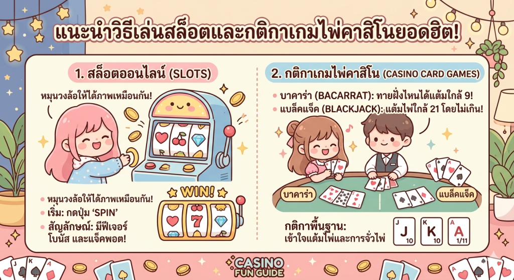 สำหรับผู้ที่ยังไม่เคยเล่นเกมสล็อตมาก่อน อาจมีคำถามว่าเกมสล็อตเล่นอย่างไร ต้องเริ่มต้นแบบไหน และควรทำความเข้าใจอะไรบ้างก่อนเริ่มเล่น บทความนี้จะอธิบายวิธีเล่นสล็อตออนไลน์ตั้งแต่พื้นฐาน เพื่อให้ผู้เล่นมือใหม่สามารถเข้าใจระบบของเกมและเริ่มเล่นได้อย่างมั่นใจ